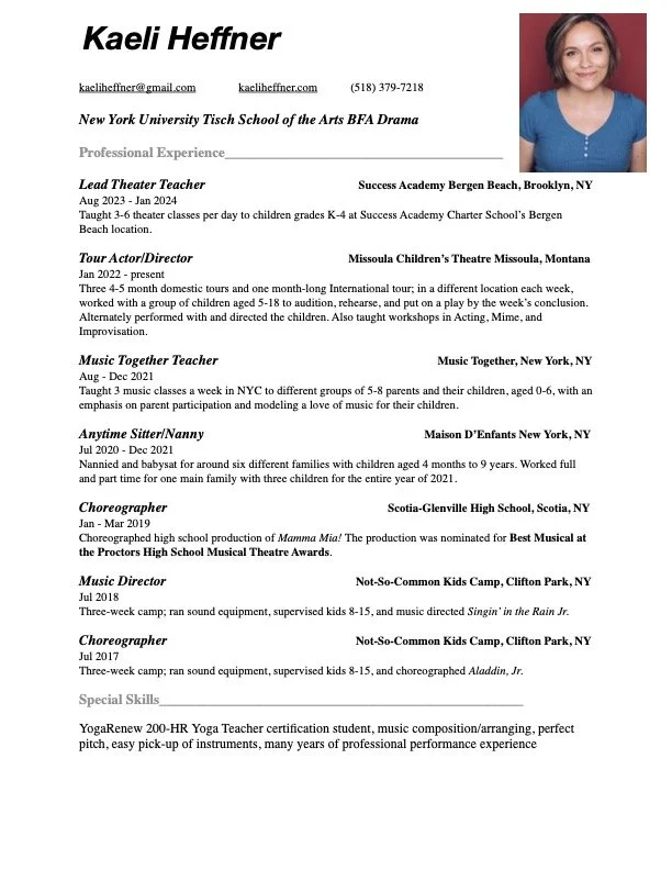 I currently work as a Tour Actor/Director with Missoula Children’s Theatre.